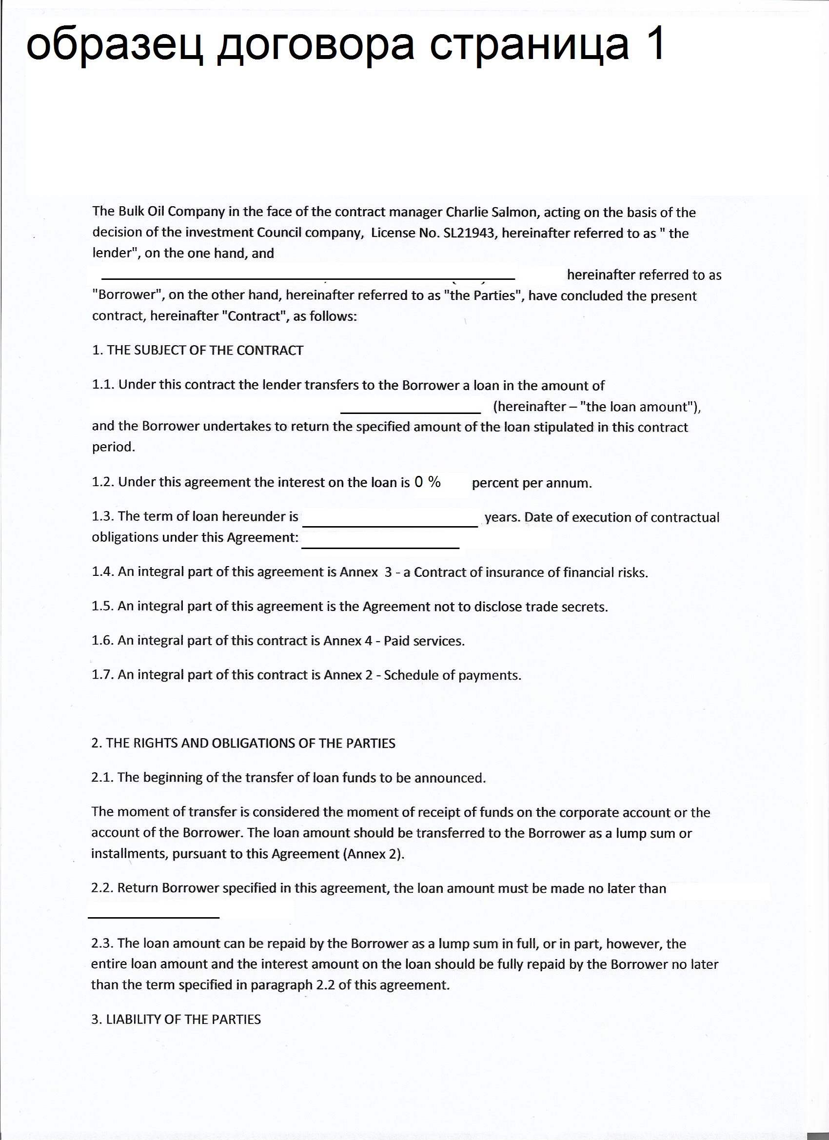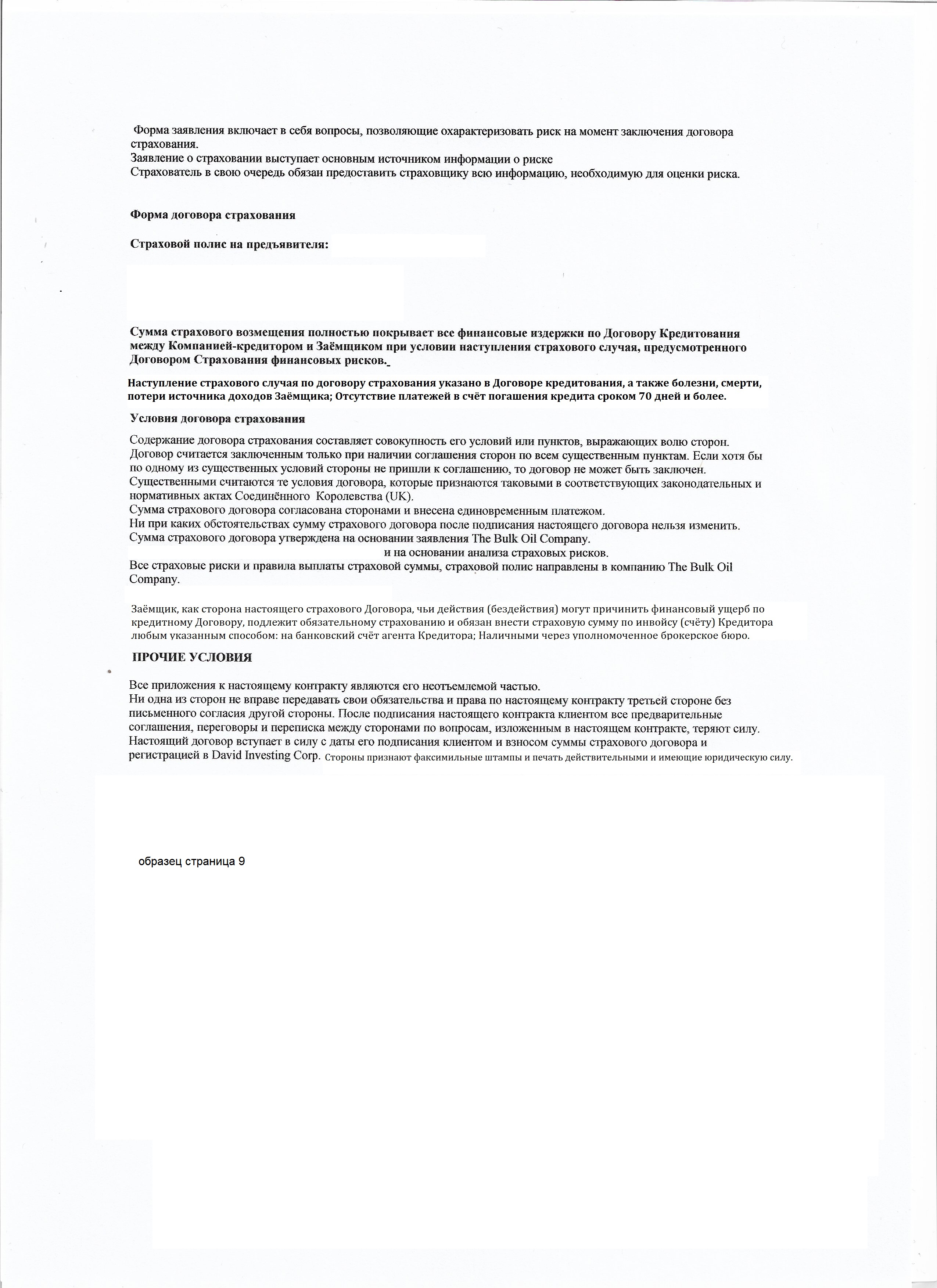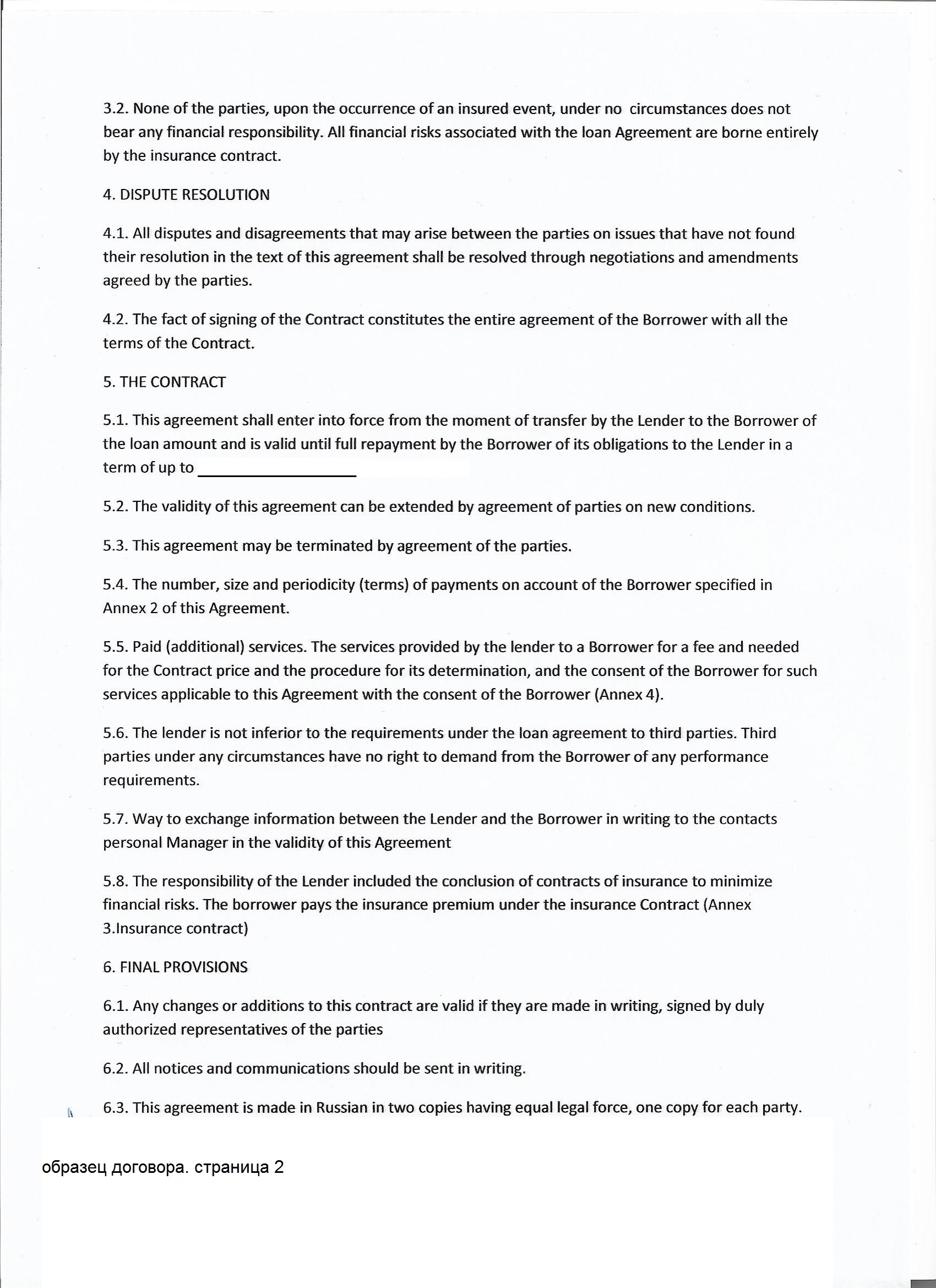 Образец кредитного договора и страхового договора по кредиту.